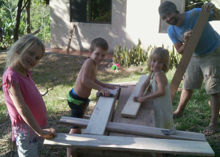 Ensuite, suite du projet de construction de lits superposés: fin du sablage et lavage en préparation du peinturage (je sais, je sais, mais sinon, cela ne rimait pas!!!) qui devrait se faire demain! Les enfants étaient trop mignons, même Charly a fait sa part. Le tout s’est bien sûr terminé par une bataille d’eau!!!